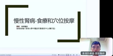 多謝 香港復康會 的邀請,曾韜醫師於6月27號下午在線上為義工分享慢性腎病的中醫養生方法透過詳細分析中藥性味和穴位功效,讓參加者能夠利用食療和穴位按摩等方法幫助腎病患者提升生活質素。