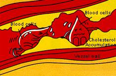 Accumulation of cholesterol inside coronary artery causing narrowing or blockage.